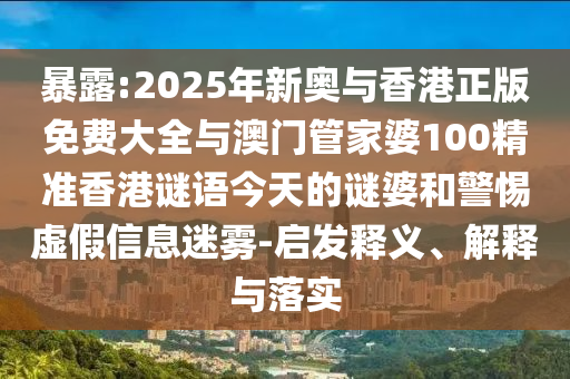 關于關鍵詞“暴露:2025年新奧與香港正版免費大全與澳門管家婆100精準香港謎語今天的謎婆”的釋義、解釋與落實,以及警惕虛假宣傳的提醒