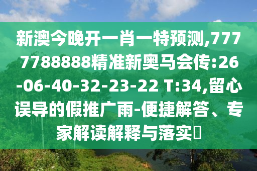 新澳今晚開一肖一特預測,7777788888精準新奧馬會傳:26-06-40-32-23-22 T:34,留心誤導的假推廣雨-便捷解答、專家解讀解釋與落實?