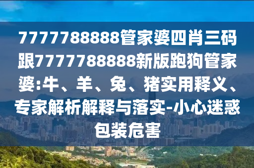 摘要:,,本文介紹了關于7777788888管家婆四肖三碼和牛、羊、兔、豬生肖的解析解釋。文章指出,要小心迷惑包裝帶來的危害,同時提供了實用的釋義和專家解析解釋。內容簡潔明了,旨在幫助讀者更好地理解和應對相關內容。