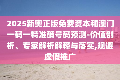 2025新奧正版免費資本和澳門一碼一特準確號碼預測價值剖析、專家解析解釋與落實和規避虛假推廣”的解析