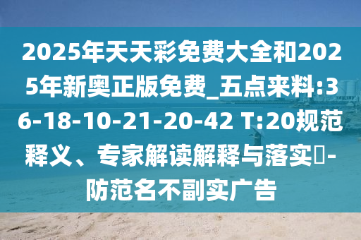 2025年天天彩免費大全和2025年新奧正版免費_五點來料:36-18-10-21-20-42 T:20規范釋義、專家解讀解釋與落實?-防范名不副實廣告