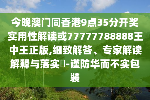 今晚澳門同香港9點35分開獎實用性解讀或77777788888王中王正版,細致解答、專家解讀解釋與落實?-謹防華而不實包裝