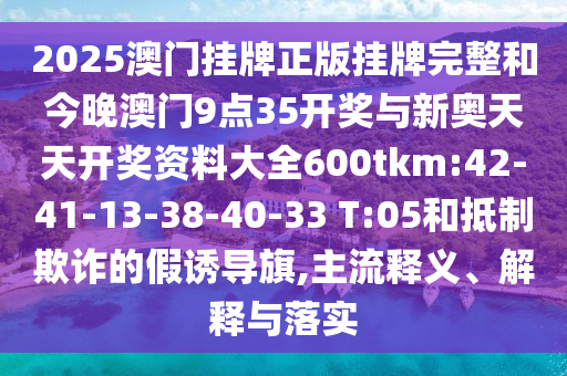 2025澳門掛牌正版掛牌完整和今晚澳門9點35開獎與新奧天天開獎資料大全600tkm:42-41-13-38-40-33 T:05:主流釋義、解釋與落實