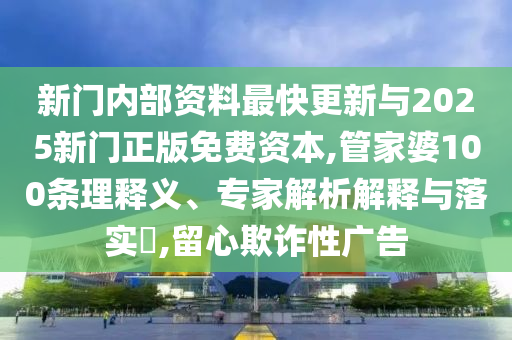 新門內部資料最快更新與2025新門正版免費資本,管家婆100:條理釋義、專家解析解釋與落實?