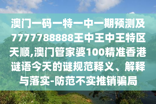 澳門一碼一特一中一期預測及7777788888王中王中王特區天順,澳門管家婆100精準香港謎語今天的謎規范釋義、解釋與落實-防范不實推銷騙局
