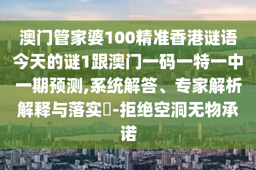 澳門管家婆100精準香港謎語今天的謎1跟澳門一碼一特一中一期預測的系統解答、專家解析解釋與落實?