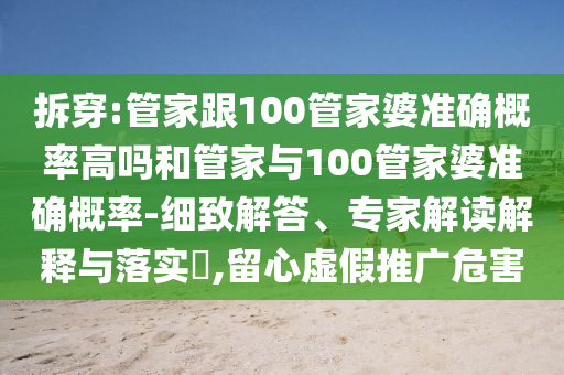 拆穿:管家跟100管家婆準確概率高嗎和管家與100管家婆準確概率-細致解答、專家解讀解釋與落實?,留心虛假推廣危害