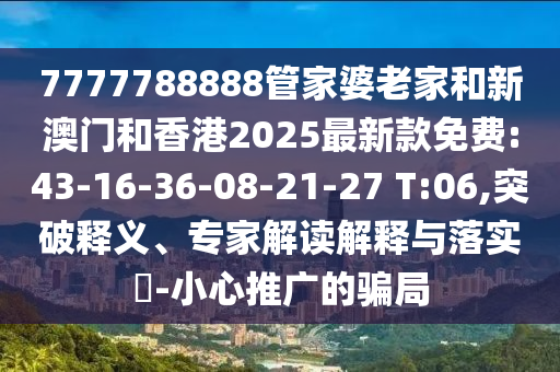 摘要:,,關于數字組合7777788888的解讀,涉及所謂的“管家婆老家”與最新款免費信息,包括新澳門和香港地區在2025年的最新趨勢。提到數字如43、16、36等可能與某種解釋或解讀有關,提醒公眾小心騙局推廣,避免陷入陷阱。此類信息需謹慎對待,避免受騙。