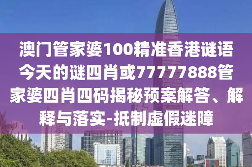 摘要:,,本文介紹了澳門管家婆提供的精準香港謎語,包括今天的謎四肖和77777888管家婆四肖四碼揭秘預案。文章強調了解答、解釋與落實的重要性,并呼吁大家抵制虛假迷障。內容旨在為讀者提供真實可靠的參考信息,幫助大家了解并解讀相關謎題。