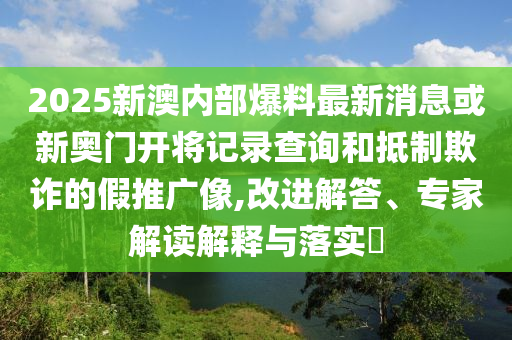 2025新澳內部爆料最新消息或新奧門開將記錄查詢改進解答、專家解讀解釋與落實?,抵制欺詐的假推廣像”的解析