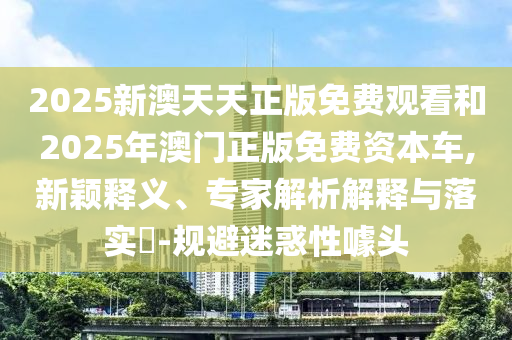 2025新澳天天正版免費觀看和2025年澳門正版免費資本車,新穎釋義、專家解析解釋與落實?-規避迷惑性噱頭
