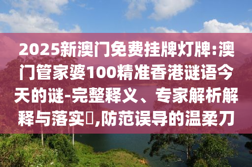 2025新澳門免費掛牌燈牌:澳門管家婆100精準香港謎語今天的謎”的完整釋義、專家解析解釋與落實及防范誤導的溫柔刀