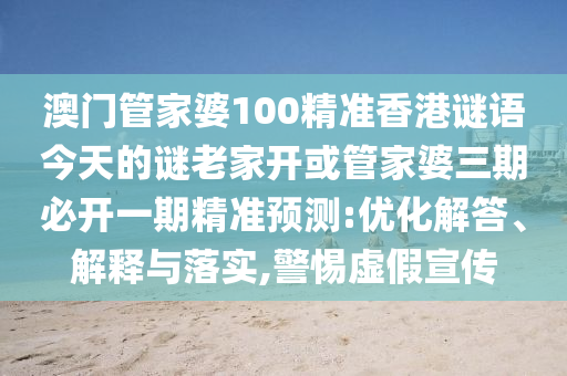 澳門管家婆100精準香港謎語今天的謎老家開或管家婆三期必開一期精準預測:優化解答、解釋與落實,警惕虛假宣傳