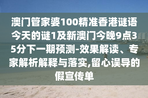 澳門管家婆100精準香港謎語今天的謎1及新澳門今晚9點35分下一期預測的效果解讀、專家解析解釋與落實
