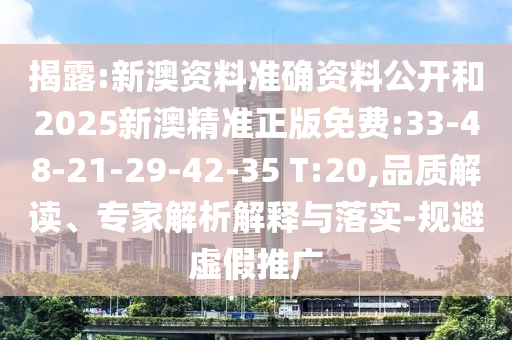 揭露:新澳資料準確資料公開和2025新澳精準正版免費:33-48-21-29-42-35 T:20,品質解讀、專家解析解釋與落實-規避虛假推廣