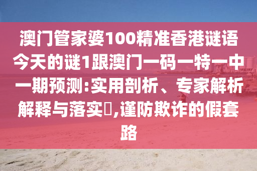 關于澳門管家婆100精準香港謎語今天的謎1及澳門一碼一特一中一期預測的謹防欺詐的假套路,我將從多個角度進行實用剖析、專家解析解釋與落實,并提醒公眾警惕虛假宣傳。