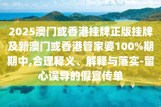 2025澳門或香港掛牌正版掛牌及新澳門或香港管家婆100%期期中,合理釋義、解釋與落實-留心誤導的假宣傳單