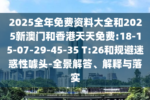 2025全年免費資料大全和2025新澳門和香港天天免費:18-15-07-29-45-35 T:26和規避迷惑性噱頭-全景解答、解釋與落實