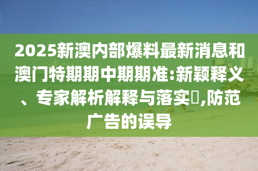 2025新澳內部爆料最新消息和澳門特期期中期期準的新穎釋義、專家解析解釋與落實?