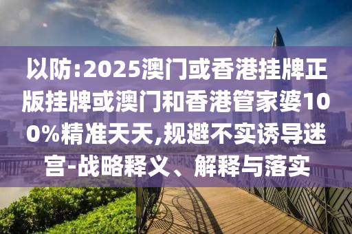 以防:2025澳門或香港掛牌正版掛牌或澳門和香港管家婆100%精準天天,規避不實誘導迷宮-戰略釋義、解釋與落實