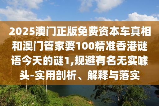 2025澳門正版免費資本車真相和澳門管家婆100精準香港謎語今天的謎1的實用剖析、解釋與落實