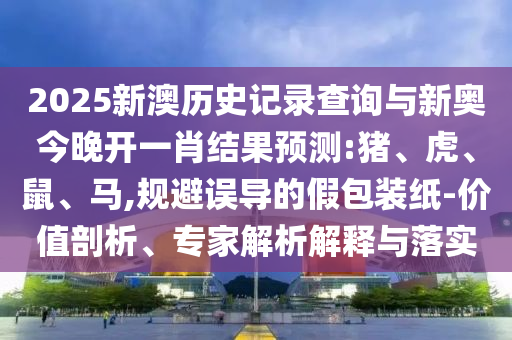 摘要:本文將介紹關于新澳歷史記錄查詢和新奧今晚生肖結果預測的內容。預測結果顯示豬、虎、鼠、馬為可能的生肖。文章還將探討如何避免受到假包裝紙的誤導,包括價值剖析、專家解析解釋和落實等方面的內容。讀者可以通過本文了解到相關信息,以便做出明智的決策。