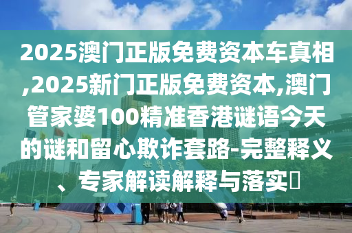 2025澳門正版免費資本車真相,2025新門正版免費資本,澳門管家婆100精準香港謎語今天的謎和留心欺詐套路-完整釋義、專家解讀解釋與落實?