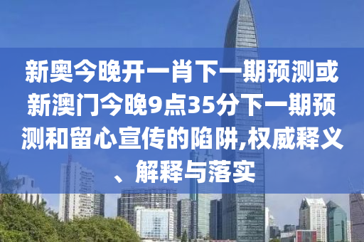 關于防范“新奧今晚開一肖下一期預測”或“新澳門今晚9點35分下一期預測”的權威釋義、解釋與落實,以及留心宣傳陷阱的解析
