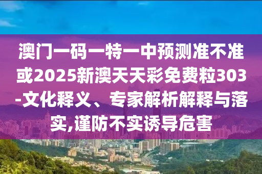 澳門一碼一特一中預測準不準或2025新澳天天彩免費粒303-文化釋義、專家解析解釋與落實,謹防不實誘導危害