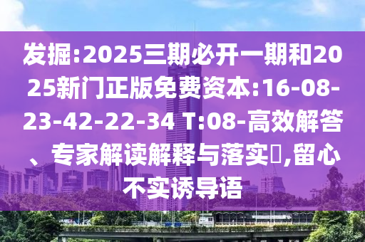 2025三期必開一期和2025新門正版免費資本:16-08-23-42-22-34 T:08的高效解答、專家解讀解釋與落實?