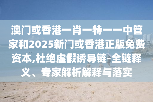 澳門或香港一肖一特一一中管家和2025新門或香港正版免費資本,杜絕虛假誘導鏈-全鏈釋義、專家解析解釋與落實