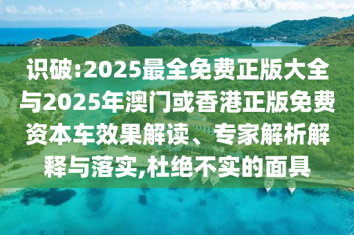 摘要:本文揭示了關于2025年澳門或香港正版免費資本車的解讀、專家解析解釋與落實的內容。文章強調識破不實面具,提供全面的正版資源,確保信息的真實性和可靠性。通過專家的解析解釋,幫助讀者更好地理解相關概念和實際操作,確保落實效果。本文旨在為廣大讀者提供真實、準確的信息資源,避免受到不實信息的誤導。