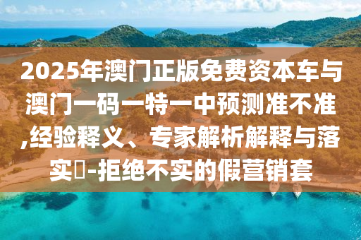 2025年澳門正版免費資本車與澳門一碼一特一中預測準不準,經驗釋義、專家解析解釋與落實?-拒絕不實的假營銷套