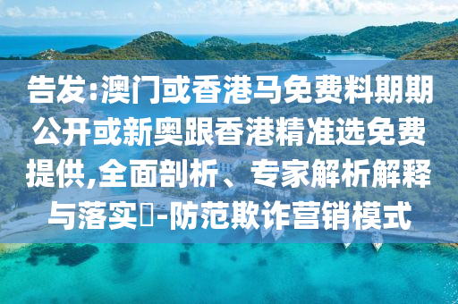 告發:澳門或香港馬免費料期期公開或新奧跟香港精準選免費提供,全面剖析、專家解析解釋與落實?-防范欺詐營銷模式