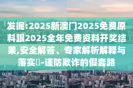 摘要:本文提及關于2025新澳門免費原料和全年免費資料開獎結果的探討。文章強調安全解答、專家解析解釋與落實的重要性,并提醒公眾謹防欺詐的假套路。內容旨在提供真實可靠的信息,幫助人們了解相關情況,避免受到不法分子的欺騙。