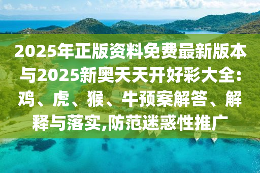 2025年正版資料免費最新版本與2025新奧天天開好彩大全:雞、虎、猴、牛預案解答、解釋與落實,防范迷惑性推廣