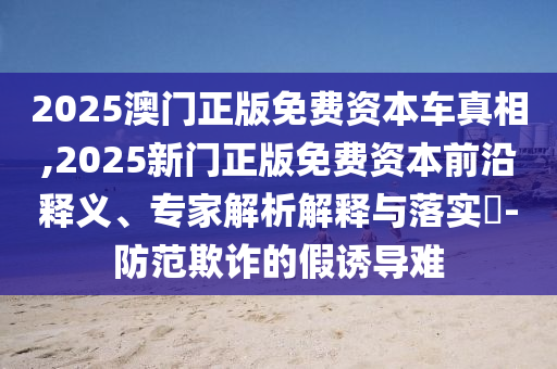 2025澳門正版免費資本車真相,2025新門正版免費資本前沿釋義、專家解析解釋與落實?-防范欺詐的假誘導難