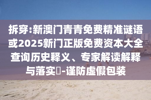 摘要:,,本文提醒讀者警惕虛假包裝,介紹了關于新澳門青青免費精準謎語、2025新門正版免費資本大全的查詢歷史釋義和專家解讀解釋的內容。文章強調落實真實信息的重要性,并呼吁人們謹慎對待此類信息,以免受到誤導。