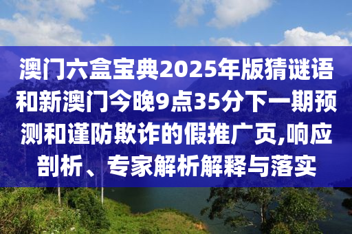 摘要:澳門六盒寶典2025年版包含猜謎語內容,同時涉及新澳門今晚9點35分的預測。提醒大家注意防范欺詐的假推廣頁,對此進行響應剖析。專家對相關內容做出解析解釋,強調落實防范措施,保護自身權益,切勿被不實信息誤導。