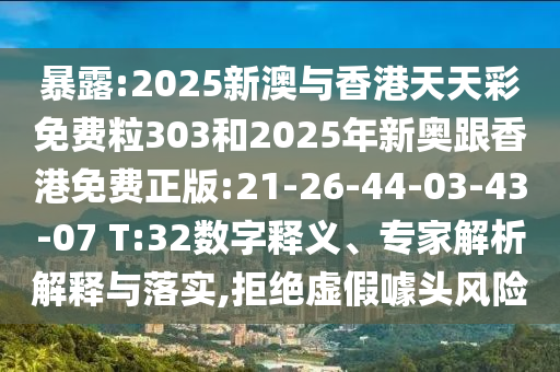 暴露:2025新澳與香港天天彩免費粒303和2025年新奧跟香港免費正版:21-26-44-03-43-07 T:32數字釋義、專家解析解釋與落實,拒絕虛假噱頭風險