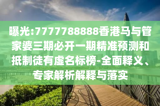 關于曝光“7777788888香港馬與管家婆三期必開一期精準預測”等相關虛假宣傳的全面釋義、專家解析解釋與落實警惕公眾的文章