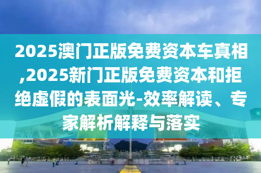 2025澳門正版免費資本車真相,2025新門正版免費資本和拒絕虛假的表面光-效率解讀、專家解析解釋與落實