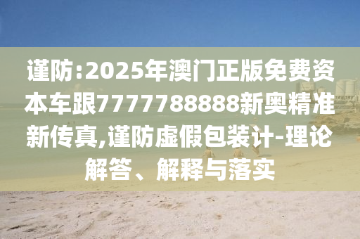 謹防:2025年澳門正版免費資本車跟7777788888新奧精準新傳真,謹防虛假包裝計-理論解答、解釋與落實