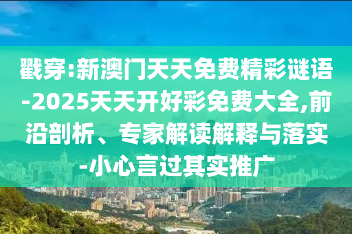 當我們提及“戳穿新澳門天天免費精彩謎語”這樣的關鍵詞時,首先要注意的是,這些詞匯可能涉及到網絡上的某種宣傳或推廣。“戳穿”一詞暗示著揭示真相,識別事物的本質,而關于“新澳門天天免費精彩謎語-2025天天開好彩免費大全”,從字面上理解,這似乎是一個關于澳門謎語的相關集合,聲稱提供免費的游戲預測或謎語解答。