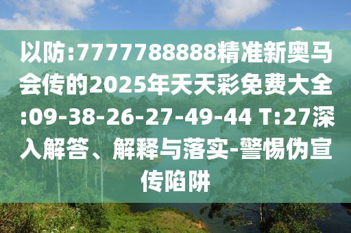 以防:7777788888精準新奧馬會傳的2025年天天彩免費大全:09-38-26-27-49-44 T:27深入解答、解釋與落實-警惕偽宣傳陷阱