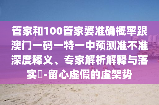 管家和100管家婆準確概率跟澳門一碼一特一中預測準不準”的深度釋義、專家解析解釋與落實,以及對于虛假宣傳的警惕