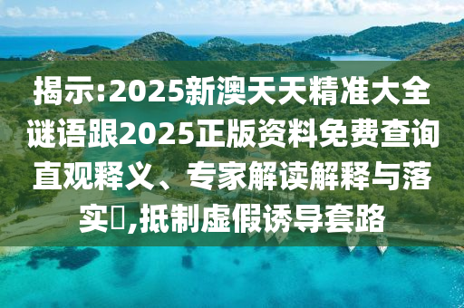 摘要:,,本文揭示關于2025新澳天天精準大全謎語的信息,提供免費的2025正版資料查詢。文章強調直觀釋義、專家解讀解釋與落實的重要性,旨在幫助公眾抵制虛假誘導套路。通過真實、準確的內容,引導公眾理性對待謎語及相關資料,避免受到誤導。