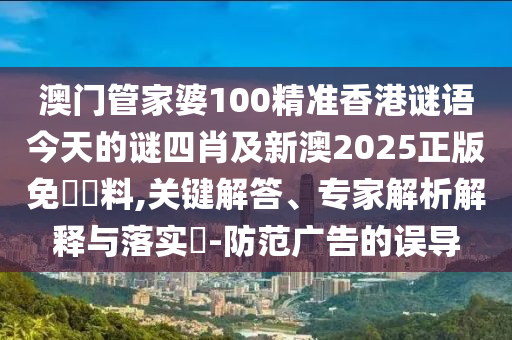 澳門管家婆100精準香港謎語今天的謎四肖及新澳2025正版免費資料,關鍵解答、專家解析解釋與落實?-防范廣告的誤導