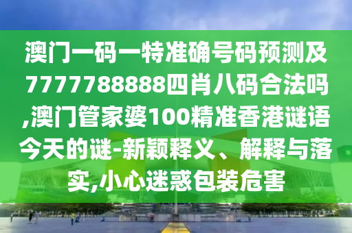 澳門一碼一特準確號碼預測及7777788888四肖八碼合法嗎,澳門管家婆100精準香港謎語今天的謎的新穎釋義、解釋與落實