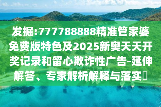 777788888精準管家婆免費版特色及2025新奧天天開獎記錄的延伸解答、專家解析解釋與落實?